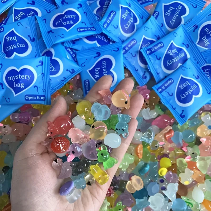 60pcs Glow In The Dark Mini Resin Animals & Mushroom Blind Bags – Fairy Garden Decor & Micro Landscape Surprise