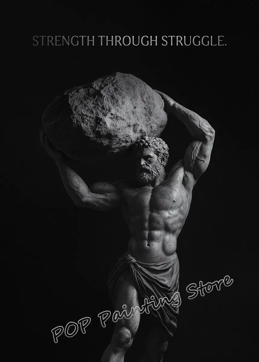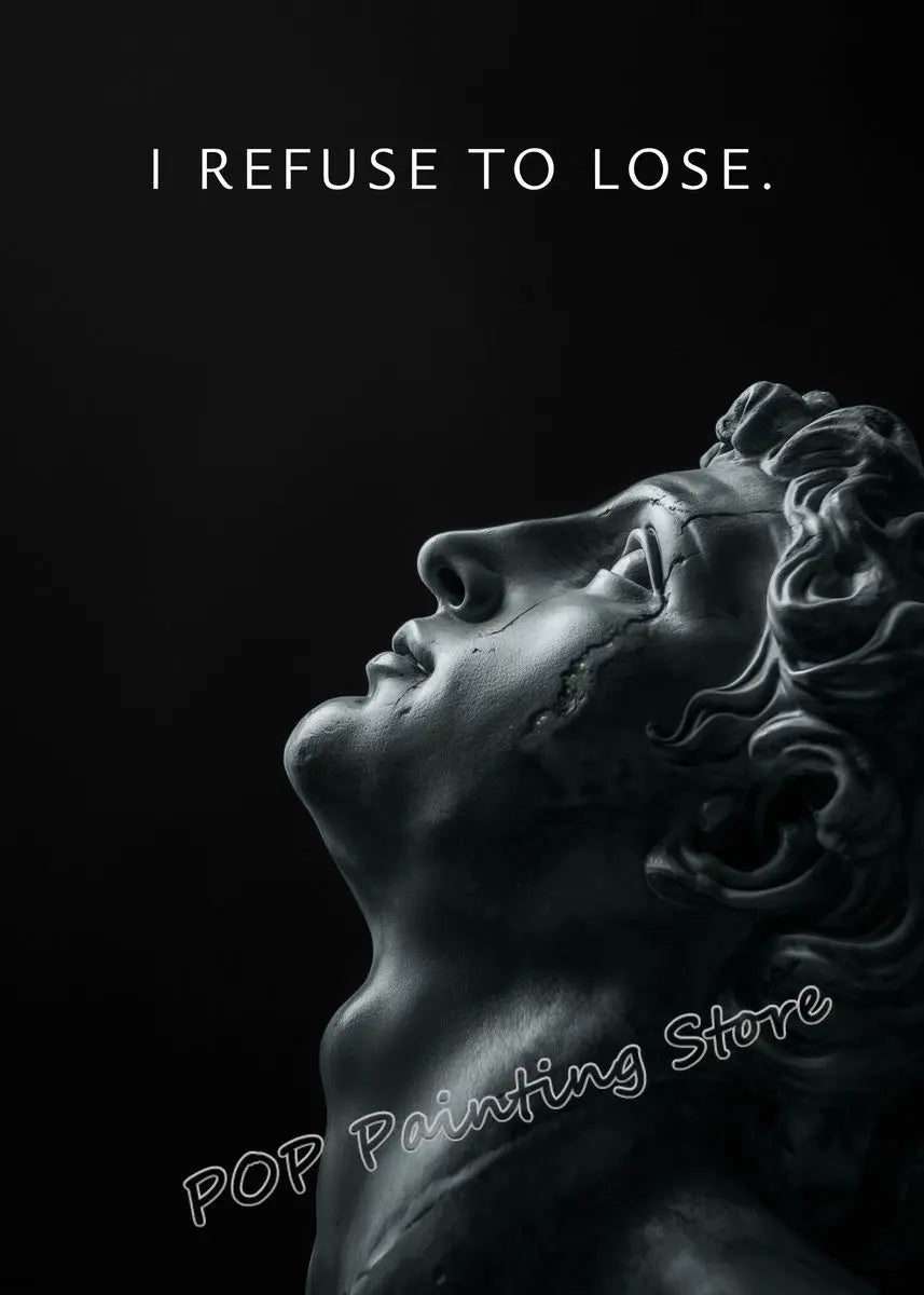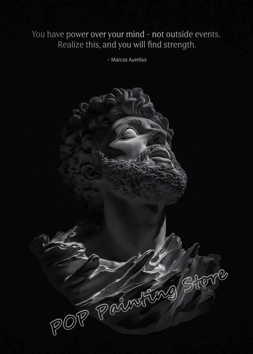 • Minimalist design with Greek sculpture and inspiring Stoic quote